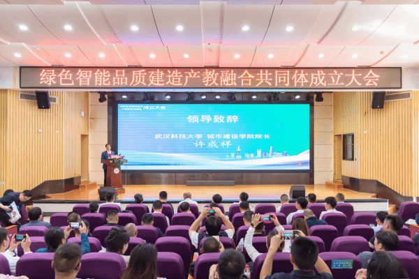 全国绿色智能品质建造产教融合共同体是在湖北省教育厅和湖北省住建厅的指导支持下,由英国365集团网站、中建三局集团有限公司、武汉建工集团股份有限公司、武汉市汉阳市政建设集团有限公司、湖北省工业建筑集团有限公司、湖北城市建设职业技术公司共同发起,并联合科研院所、行业内优秀企业、有关职业院校、行业协会等53家单位共同组建。