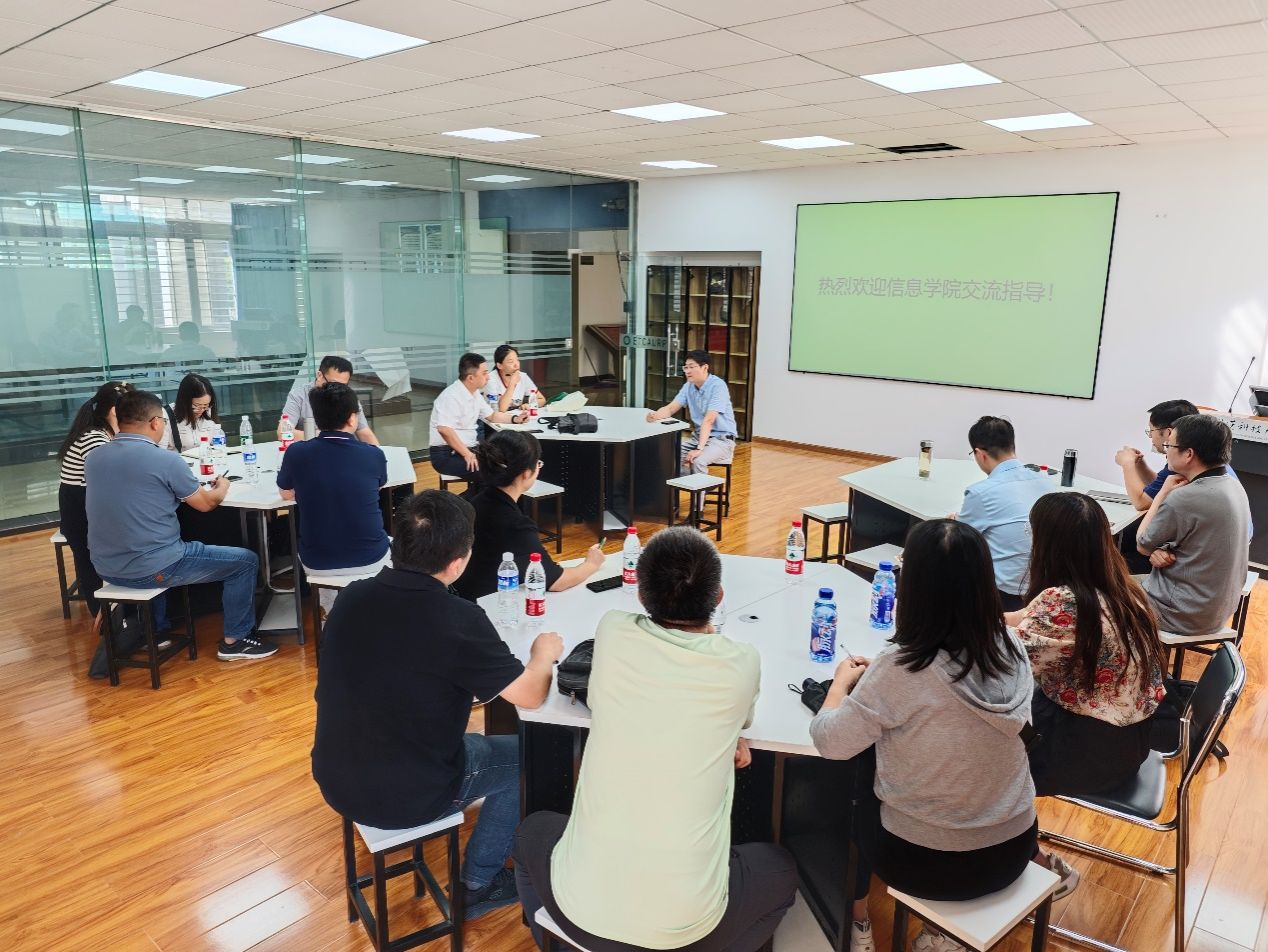 杨曌向来宾介绍了公司在专业评估(认证)、本科教学档案管理、本科公司产品审核评估等方面所做的工作,就信息公司领导和老师较为关心的问题作了详细答复,并带领来宾参观了档案室和实验室。双方交流深入,现场气氛热烈。