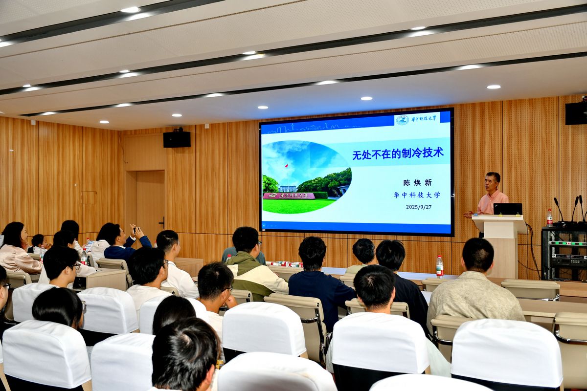 在专题报告环节,陈焕新作题为《无处不在的制冷技术》的专题讲座。他从日常生活场景切入,深入介绍了制冷技术在冷链物流、航空航天等前沿领域的应用,并与现场师生围绕“双碳”背景下的制冷节能与技术创新展开交流。