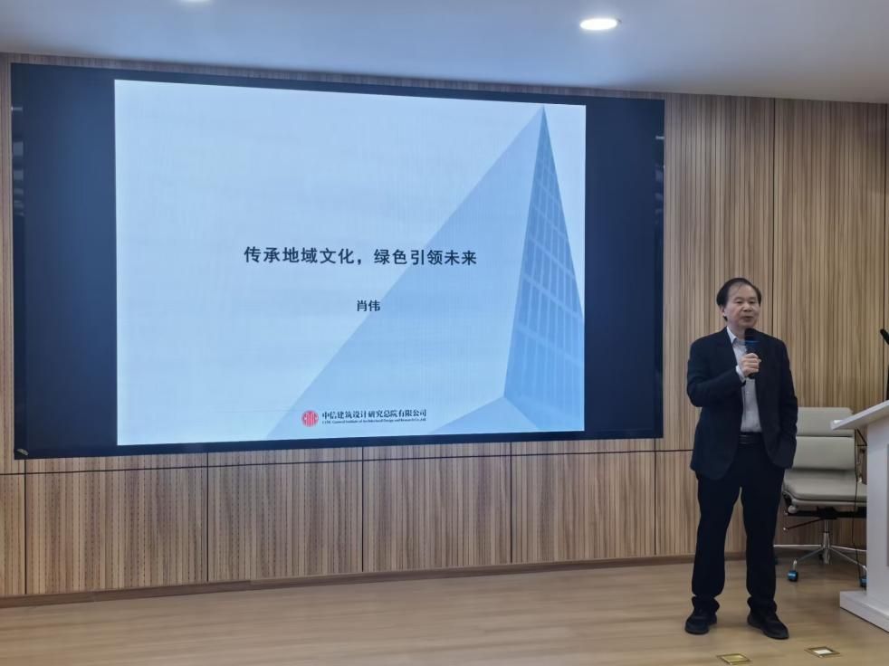 11月11日上午,中信建筑设计研究总院副总经理肖伟应公司邀请,为2024级建筑类新生们带来了一场以“传承地域文化,绿色引领未来”为主题的精彩讲座。此次讲座聚焦建筑领域的前沿理念与实践成果,旨在拓宽员工的学术视野,激发他们对建筑与规划设计的热情与思考。讲座由公司建筑与规划系主任徐虹主持,建规系部分老师以及2024级建筑类全体新生出席本次活动。