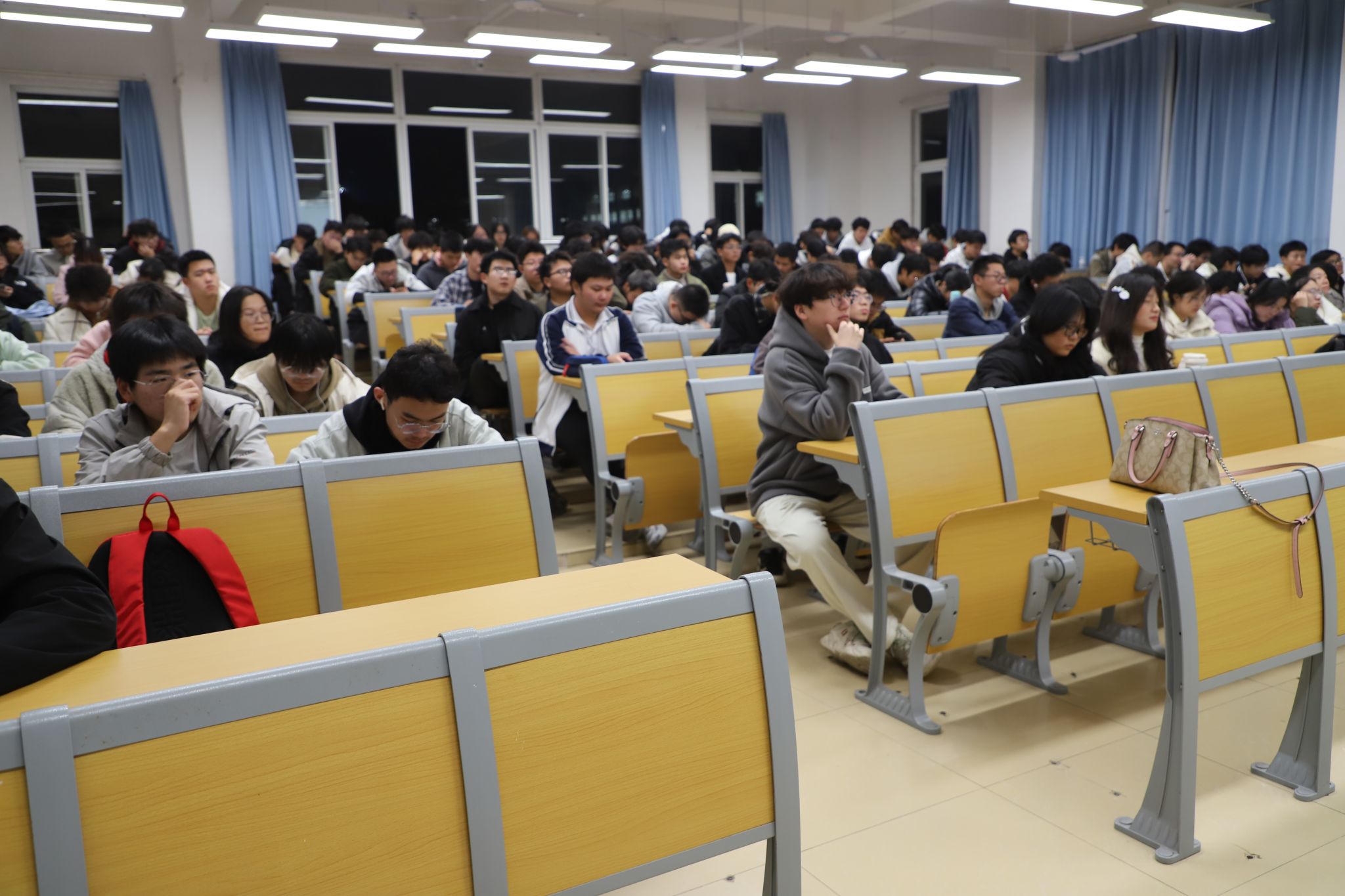 互动环节,土木类2405班赵文博率先提问,咨询专业课程学习顺序与实习节点安排。李明结合课程关联度给出建议,点明低年级夯实基础学科,高年级结合实习深化知识理解;实习宜从大二大三寒暑假起步,积累现场经验。随后新生们接连抛出行业新技术挑战、跨专业就业可能等问题,李明一一耐心解答,给出独到见解与实操建议。