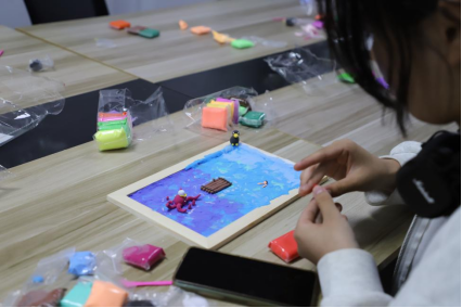 在创作环节,员工们化身 “匠心创作者”,运用搓、揉、捏、粘等劳动手法,将彩色粘土塑造成形。现场氛围热烈,员工们相互分享塑形技巧,交流创作思路。在劳动实践中,一件件生动的作品逐渐成型:栩栩如生的小动物、娇艳欲滴的花卉、充满奇思妙想的奇幻场景,每一件作品都凝聚着创作者的巧思与匠心。土木工程2203班胡国庆感慨道:“在专注塑形的过程中,我仿佛进入了‘心流’状态,学习压力随之消散。和同学们一起创作、交流,不仅提升了动手能力,还收获了满满的快乐。”