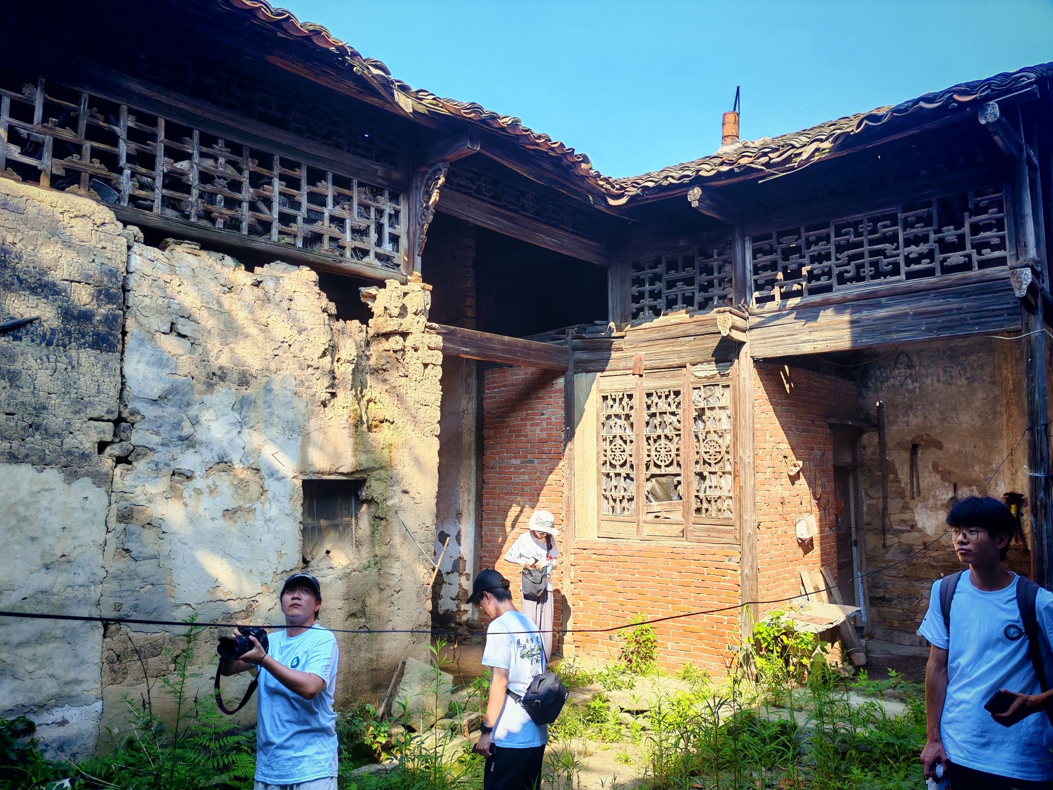 随后,团队成员前往茶林村曾经的地主老宅并用无人机航拍记录,分析其古建筑的结构特点与基本布局。为深挖茶林村历史文化脉络,团队前往瞿氏祠堂。跨越十九代的瞿氏族谱,清晰记录家族繁衍轨迹,彰显着家族传承。