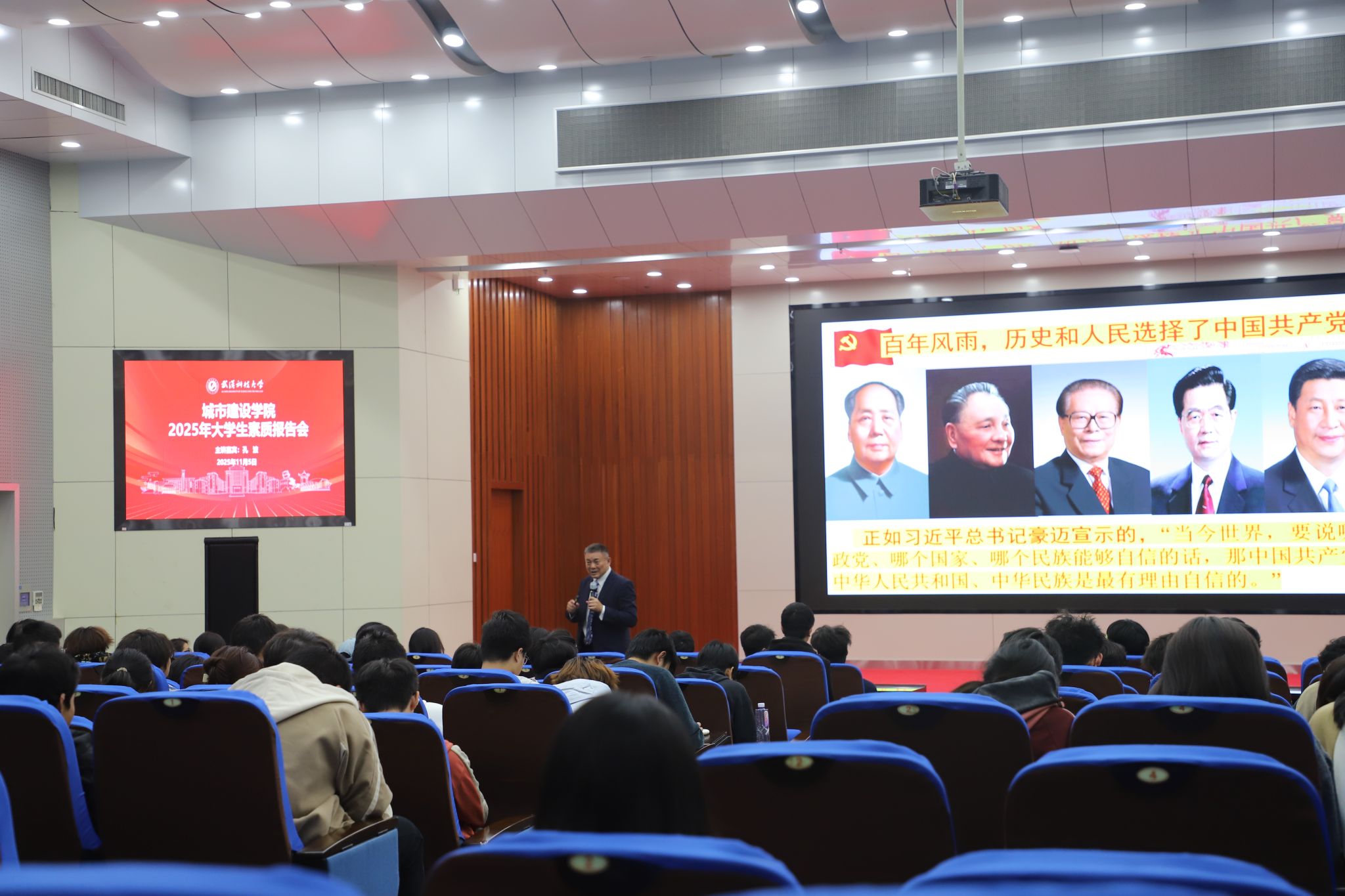 本次报告会,孔波结合了《习近平谈治国理政》第五卷的相关内容,既是新生入校后的一堂深刻思想政治教育课,又是一堂生动入党启蒙课,鼓励城建学子要坚定理想信念、提升综合素质,顶天立地、做好自己。