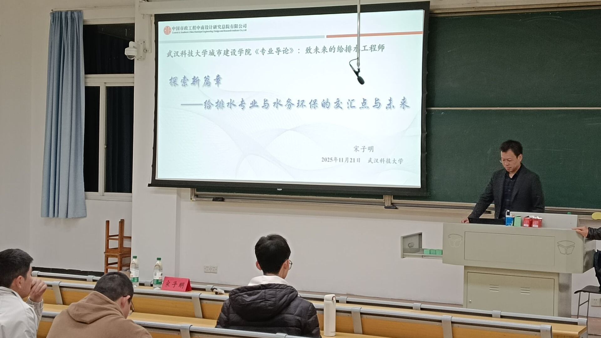 11月21日晚,公司特别邀请中国市政工程中南设计研究总院第四设计院副总工程师、员工宋子明,在13206教室开展“探索新篇章——给排水专业与水务环保的交汇点与未来”主题讲座,为新生进行专业启蒙。