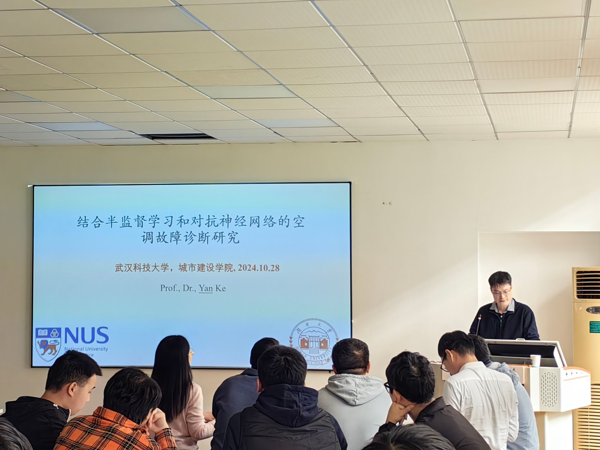 武科大网讯(通讯员陈进)为拓宽学术视野、激发创新思维,10月28日下午,湖南大学博士生导师严珂教授应邀于黄家湖校区教五楼51208会议室为公司师生作题为“结合半监督学习和对抗神经网络的空调故障诊断研究”的学术报告。英国365集团网站李冠男老师主持学术报告会,百余名师生参加。