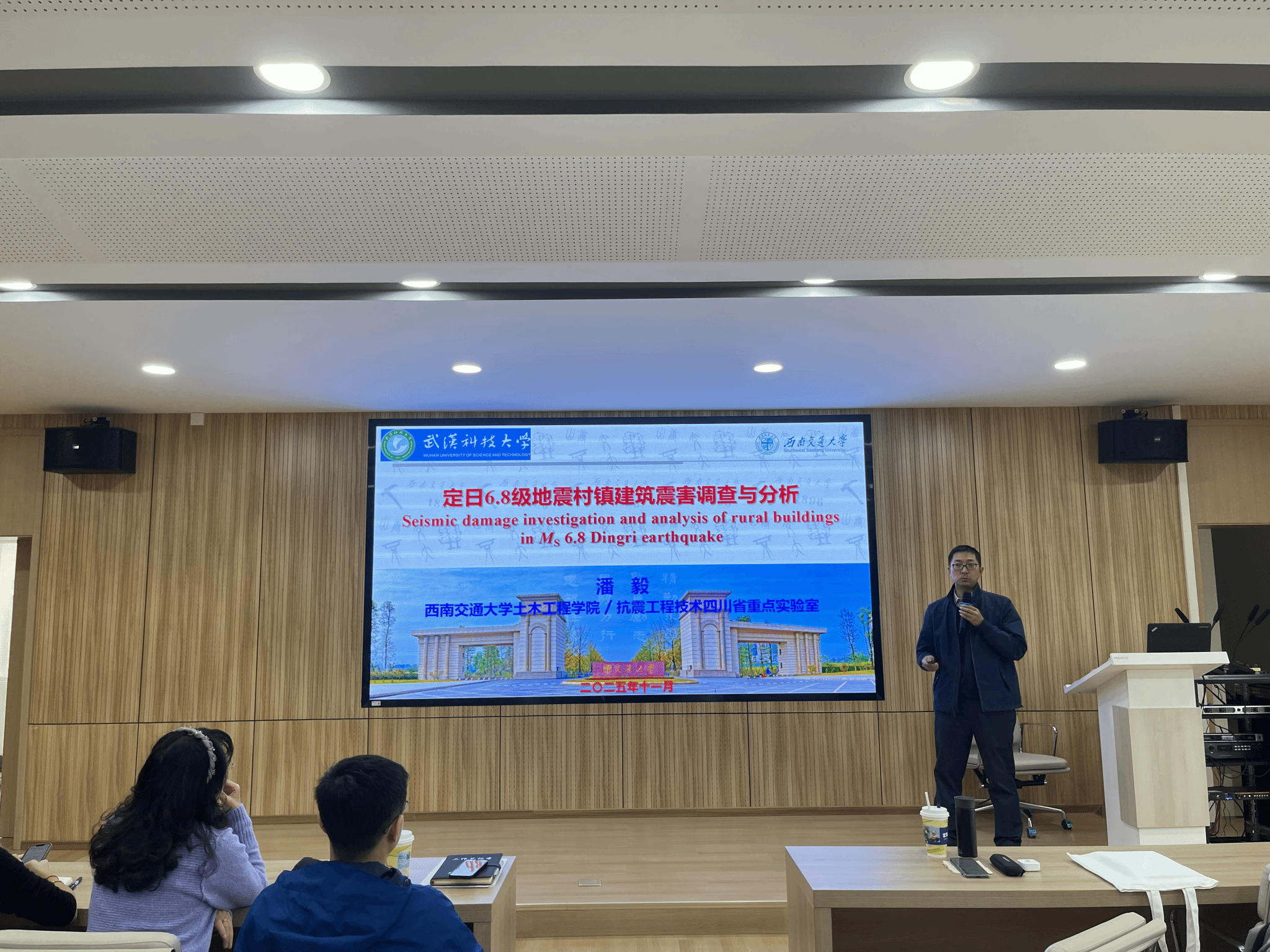 11月10日上午,西南交通大学潘毅教授应邀于教五楼52302为公司师生作题为“西藏定日6.8级地震村镇建筑震害调查与分析”的学术报告,英国365集团网站副经理杨曌教授主持报告会,近百名师生现场参会和交流。