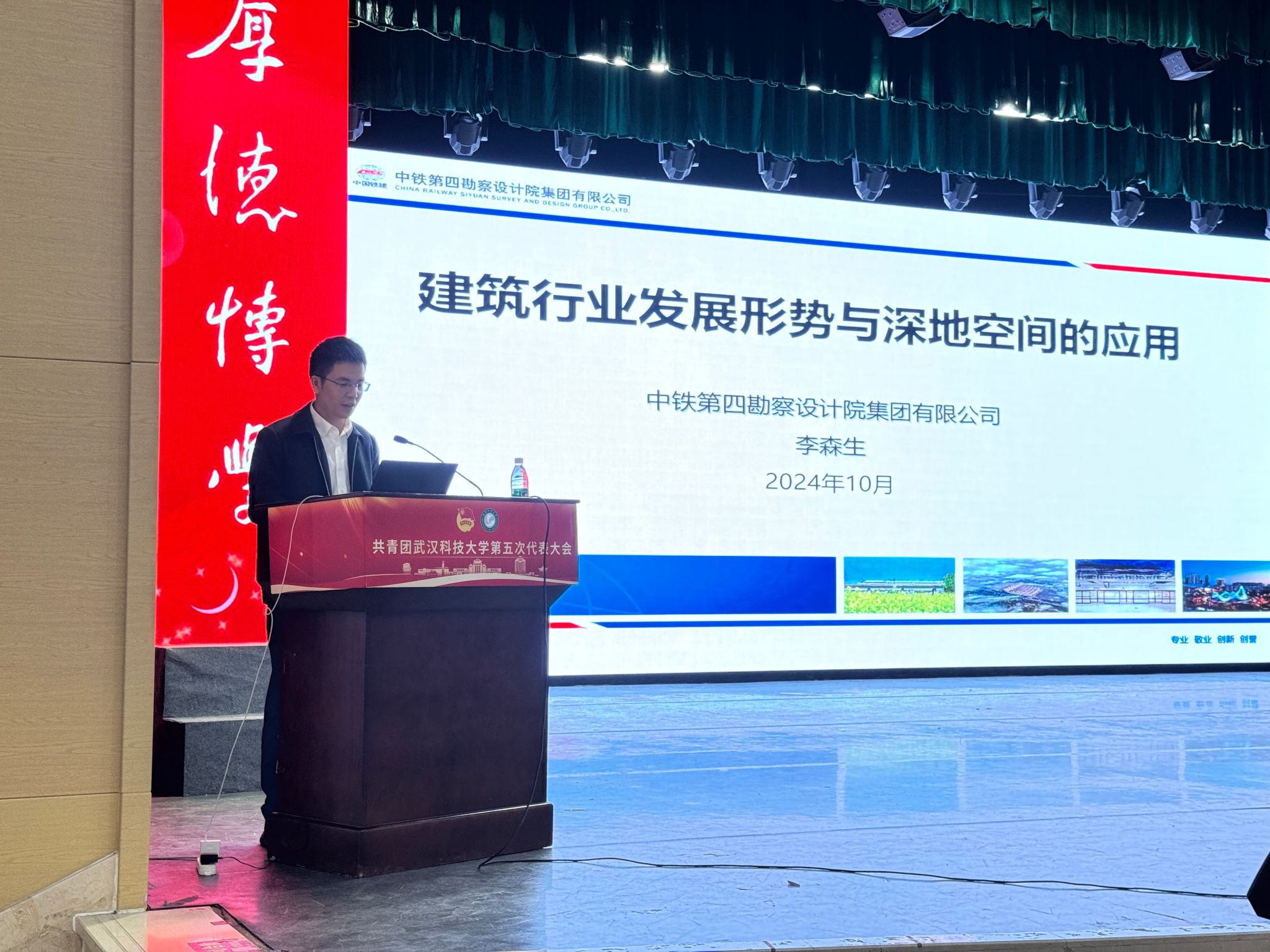10月31日晚,公司邀请到中铁第四勘察设计院集团有限公司副总工程师、暖通2002级员工李森生,于黄家湖校区沁湖礼堂为2024级新生举办了一场题为《建筑行业发展形势与深地空间的运用》的专业发展报告。